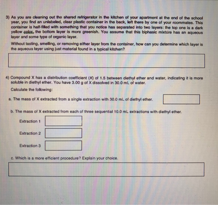 This can be done before lab by comparing densities but it can also be quickly determined in the lab. For example dissolving salt in. Without tasting smelling or removing either layer from the container how can you determine which layer is the aqueous layer using just material found in a typical kitchen.